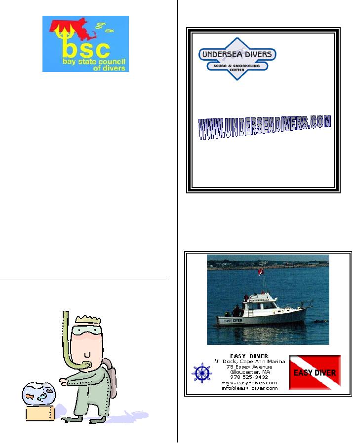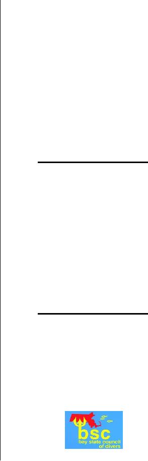 The BSC serves as a liaison between dive clubs and dive stores to promote recreational diving activity in Massachusetts. All divers are encouraged to support the BSC with an annual contribution of $5. Your contribution will allow the BSC to continue to be a strong advocate for the recreational diving community in Massachusetts.